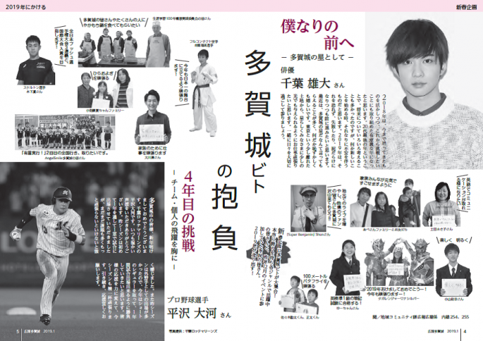 令和元年広報多賀城1月号で千葉雄大さんから新年の抱負をいただきました。その中で、「多賀城の星だなんて言ってもらえることが多く、何だか恥ずかしくも嬉しいです。東京という少し離れた土地から、星らしくみなさまに少しの光でも与えられるようにお仕事頑張りたいと思います」とコメントいただきました。