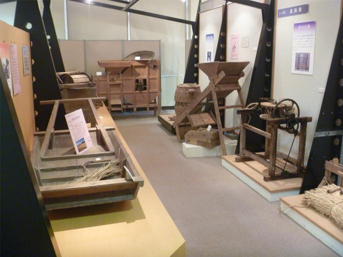 この展示は、実際に市内で使われていた農具を通して、機械化が進む昭和40年代以前の農家の一年を紹介するものです。資料には直接触れられますので、当時の暮らしぶりを体感していただければと思います。